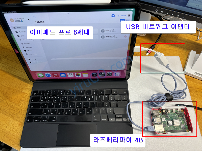 이러한 문제를 해결하는 대표적인 방법이 LAN 케이블로 아이패드와 라즈베리파이를 직접 연결하는 것이다. USB LAN 어댑터를 활용하면 인터넷 없이도 두 디바이스 간 통신이 가능하다. 또한, 라즈베리파이의 Wi-Fi 설정을 신경 쓰지 않아도 바로 작업을 진행할 수 있는 환경을 제공한다.