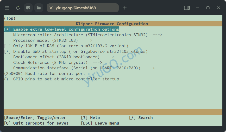 Bash아래는 펌웨어 빌드화면이다. 현재 3D프린터의 MCU 사양과 통신 관련 설정을 진행한다.