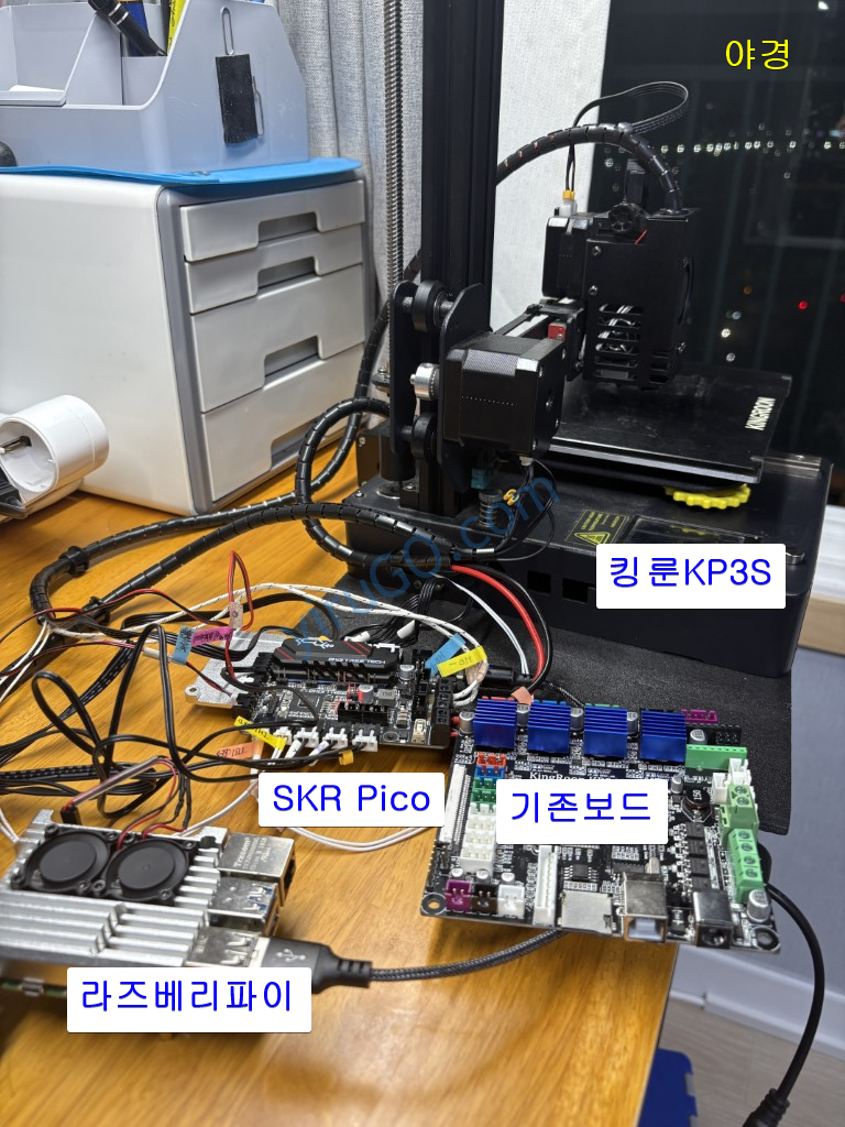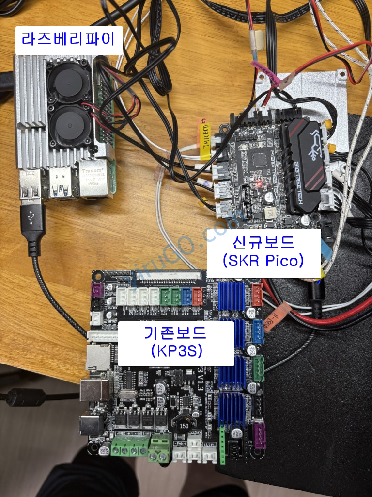 Voron을 위해 준비한 라즈베리파이와 SKR Pico 보드였지만 KP3S 보드가 아닌 SKR Pico 보드로 연결하는데 하드웨어적인 제약은 없었다. 아마도 3D 프린터가 오픈 소스 생태계를 기반으로하기 때문이어서 그런 것 같다.