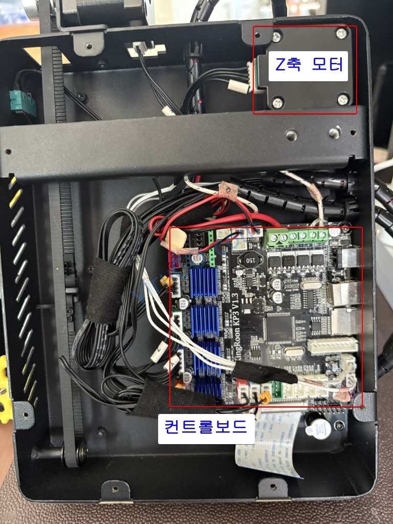 먼저 프린터 하부를 열고 컨틀롤보드를 분리했다. 3D 프린터 보드와 연결 부분은 쉽게 분리될 있었다. 보드를 분리하고 새로운 모터 드라이브 보드인 SKR Pico 보드에 연결할 수 있도록 선들을 정리했다.